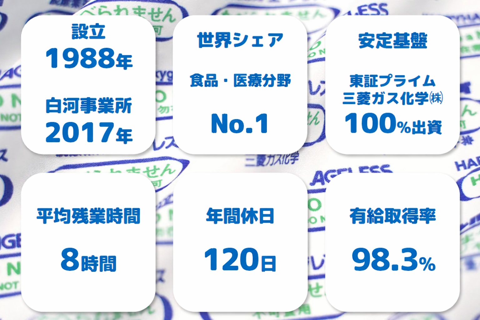 脱酸素剤「エージレス® 」を生産し、品質および食品安全に重点を置いています。